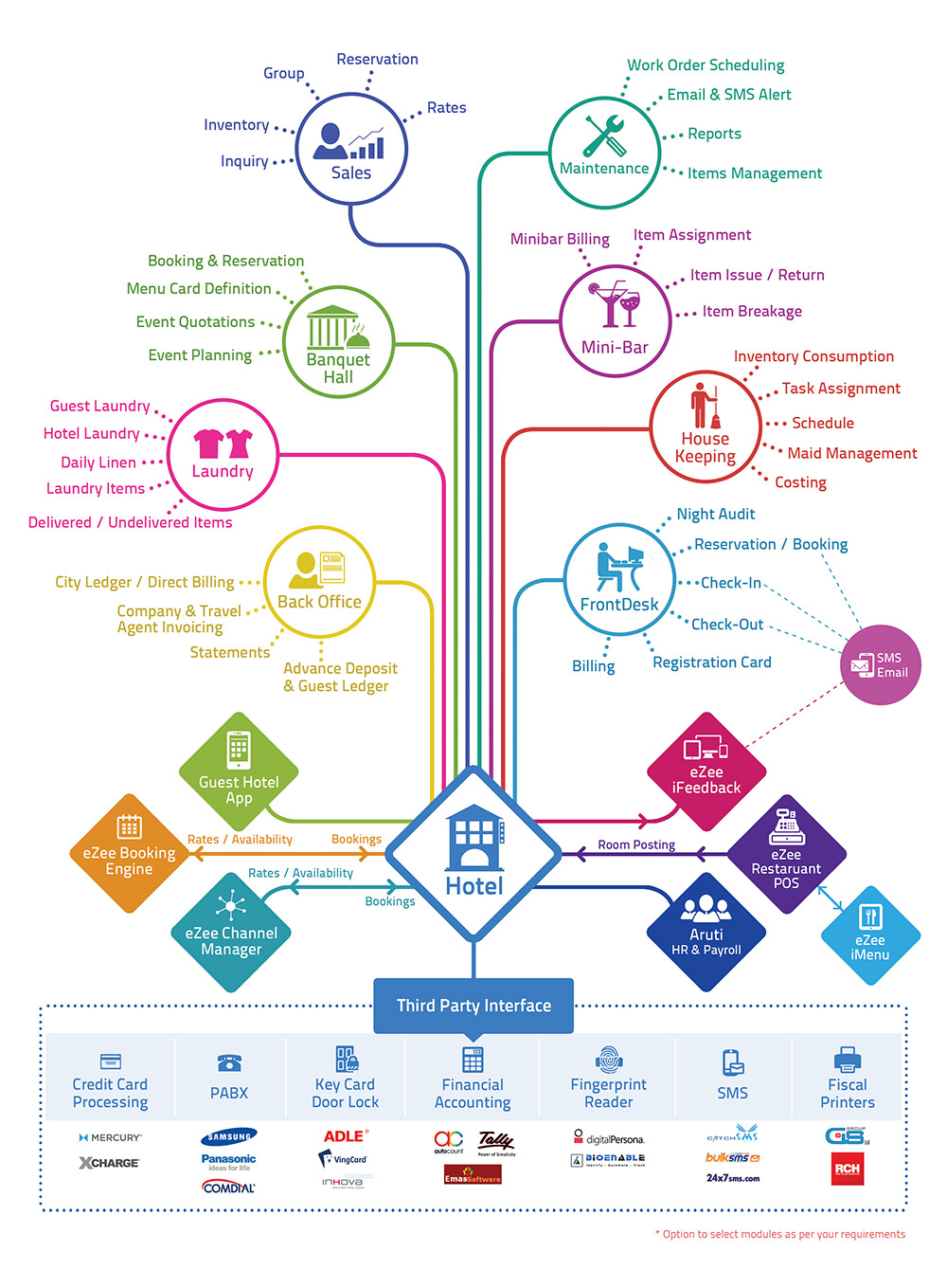 An innovatory property management system, eZee FrontDesk helps hotels and hotel chains to run their business operations conveniently and productively. Devised and developed with latest technology, this PMS satisfies the international hospitality norms regardless of the type and size of your property.