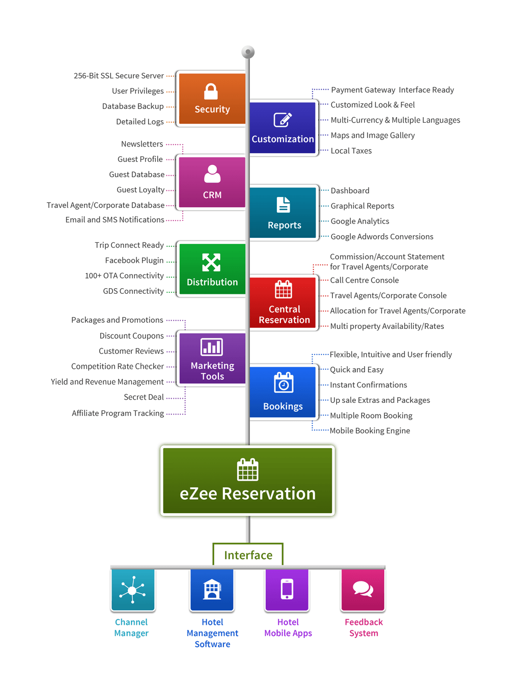 The reservation system is full of cutting-edge features that lets you track your property bookings and continuously engage the bookers or even direct the bookings to your eZee PMS or any other Hotel Software you may be using. It is a perfect solution for individual hotels, hotel chains and resorts. The customization options offers full control over the branding which fits naturally into the hotel’s website aesthetically. Its intuitive reporting system gives you up-to-the-minute report of the bookings your property has received through the internet.